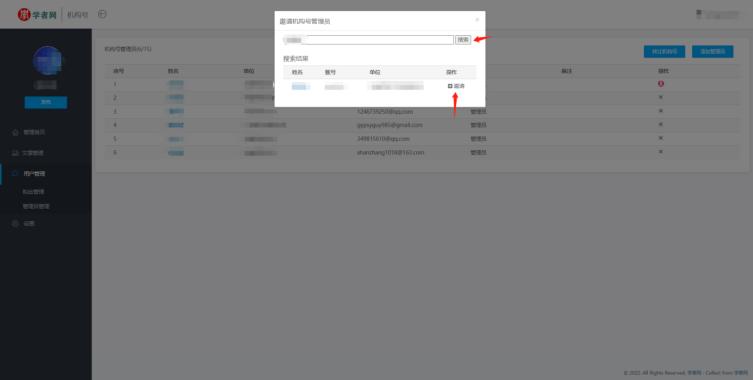 (2)在对话框中搜索要邀请的管理员姓名,点击“邀请”按钮,发出邀请。