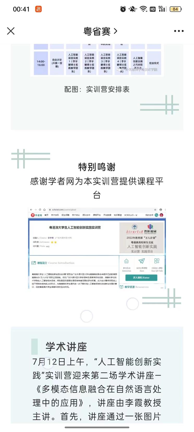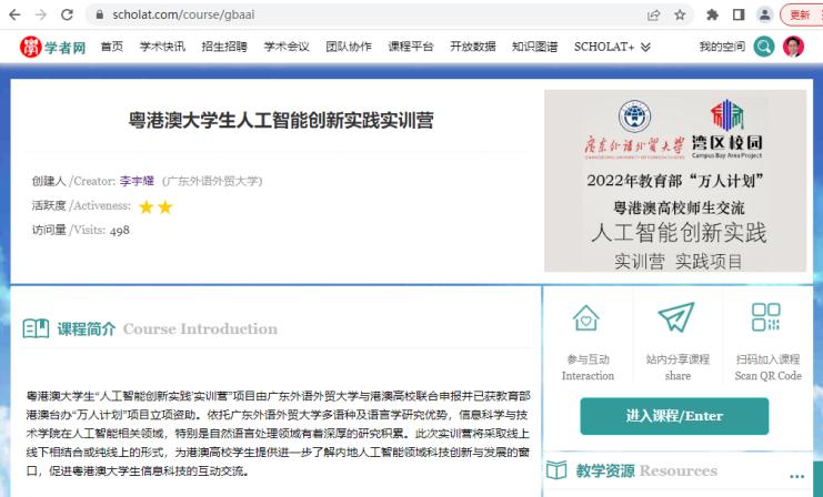 教育部港澳台办“万人计划”立项项目,广东外语外贸大学信息科学与技术学院/网络空间安全学院承办的粤港澳大学生“人工智能创新实践”实训营已于7月10日正式开营(瞄一眼开班新闻),来自粤港澳大湾区各大高校学生80余人参加了线上开班仪式。实训营计划于7月16日结营。