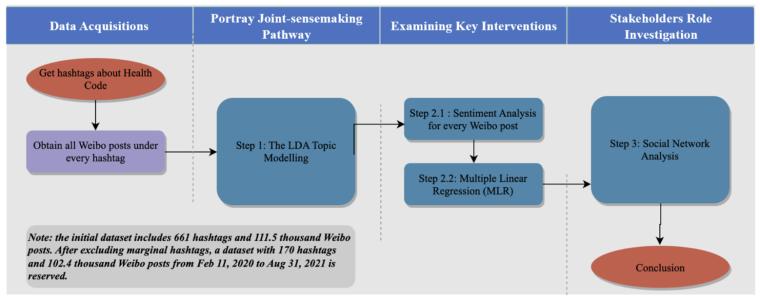 研究采用了一种多步骤方法,包括情感分析、主题分析和网络分析,以探索和解释公共危机背景下的协同创新过程。通过系统分析超过11万条微博帖文,本文揭示了两条协同路径和三种关键干预措施。这些路径和干预措施在不同的网络模块中效果不同。特别是官方媒体和意见领袖,在连接干预执行者与公众之间起着重要的媒介作用。