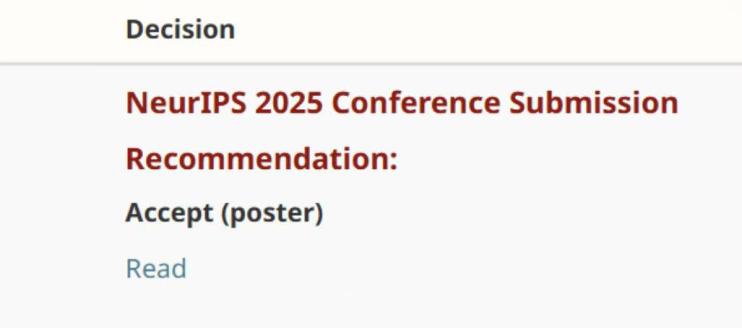 一篇论文被CCF A类顶级会议 NeurIPS 2025录用!